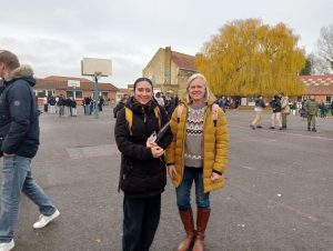 La jornada ha continuado con Annick y su clase de español, también de 4ème. En ella, sus alumnos han visto el vídeo introductorio del IES Isla Verde y han practicado su expresión en español preguntándonos sobre nuestro instituto y nuestra rutina en España. Finalmente, de la mano de nuestro proyecto de eTwinning, hemos realizado un intercambio de mensajes: nosotras le hemos dado decenas de cartas navideñas escritas por nuestros estudiantes de 3º de ESO y, a cambio, hemos recibido numerosos “mensajes embotellados” cargados de buenos deseos relacionados con los Objetivos de Desarrollo Sostenible. ¡Estamos deseando llevarlos a Algeciras!