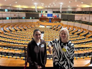 El momento cumbre del día ha sido poder disfrutar de una visita al hemiciclo del Parlamento Europeo, donde se toman relevantes acuerdos relacionados con todos los ámbitos de nuestra vida, experimentando la sensación de convertirnos en unas parlamentarias por un día.